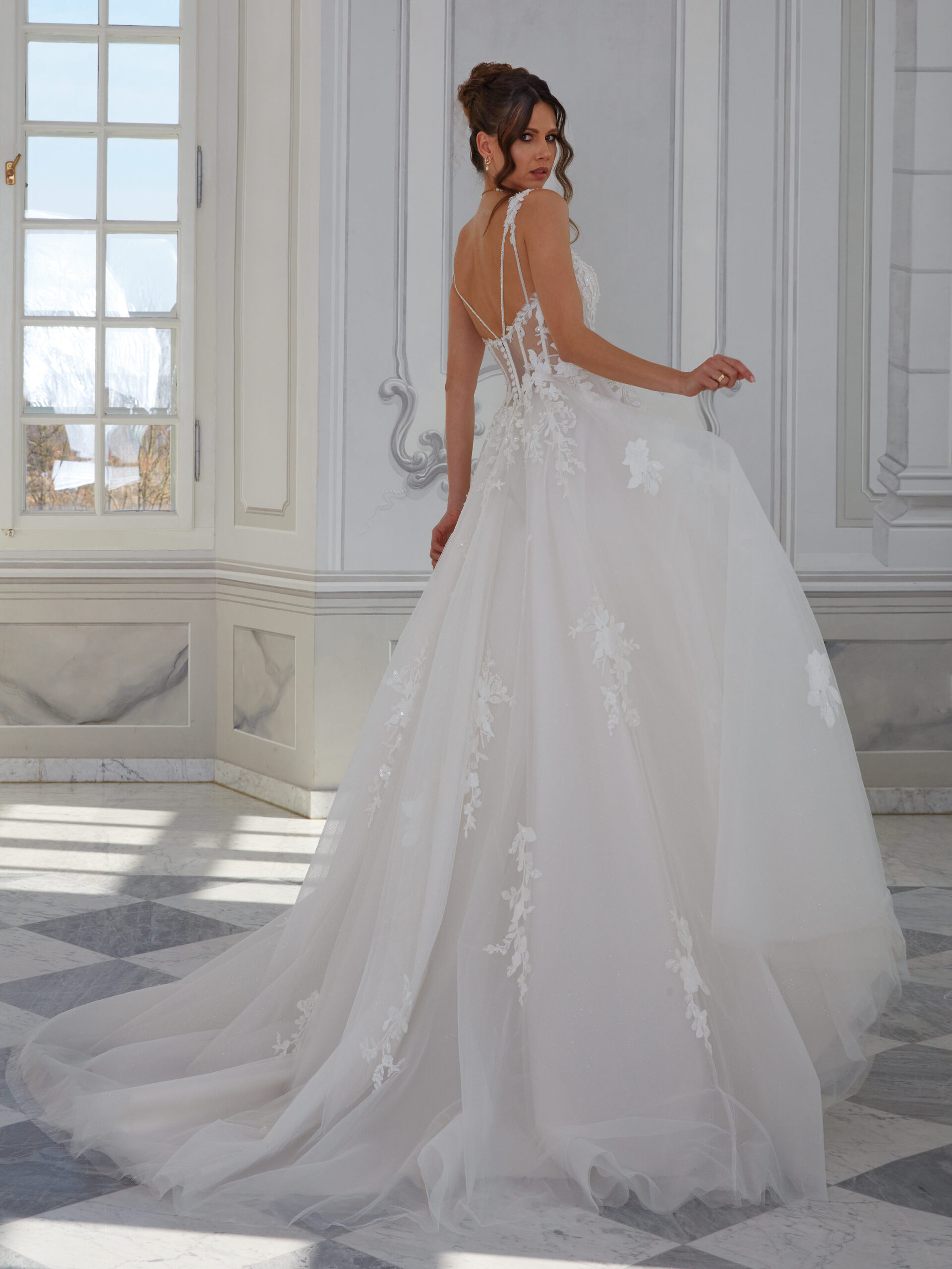 Du gehörst zu den Bräuten, die sich etwas trauen, dann bist du bei Vanilla Sposa genau richtig – freue dich auf sehr transparente Optik, ausgefallene Designs, elegante Spitze und natürlich auch einiges an Glitzer!